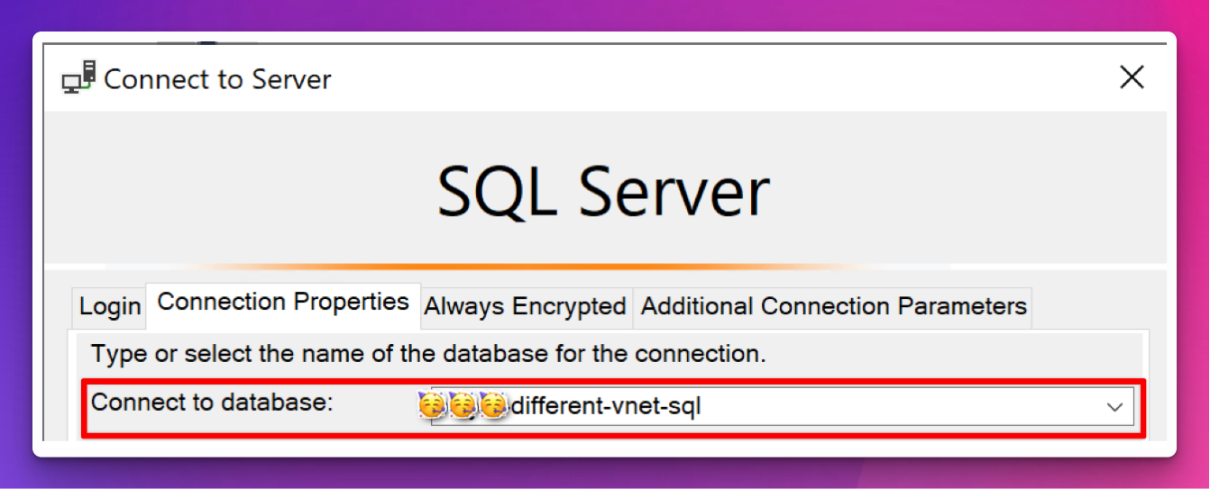 Note: Depending on the permissions you want the managed identity to have, you will have to type in the database name in the login window, usually not the